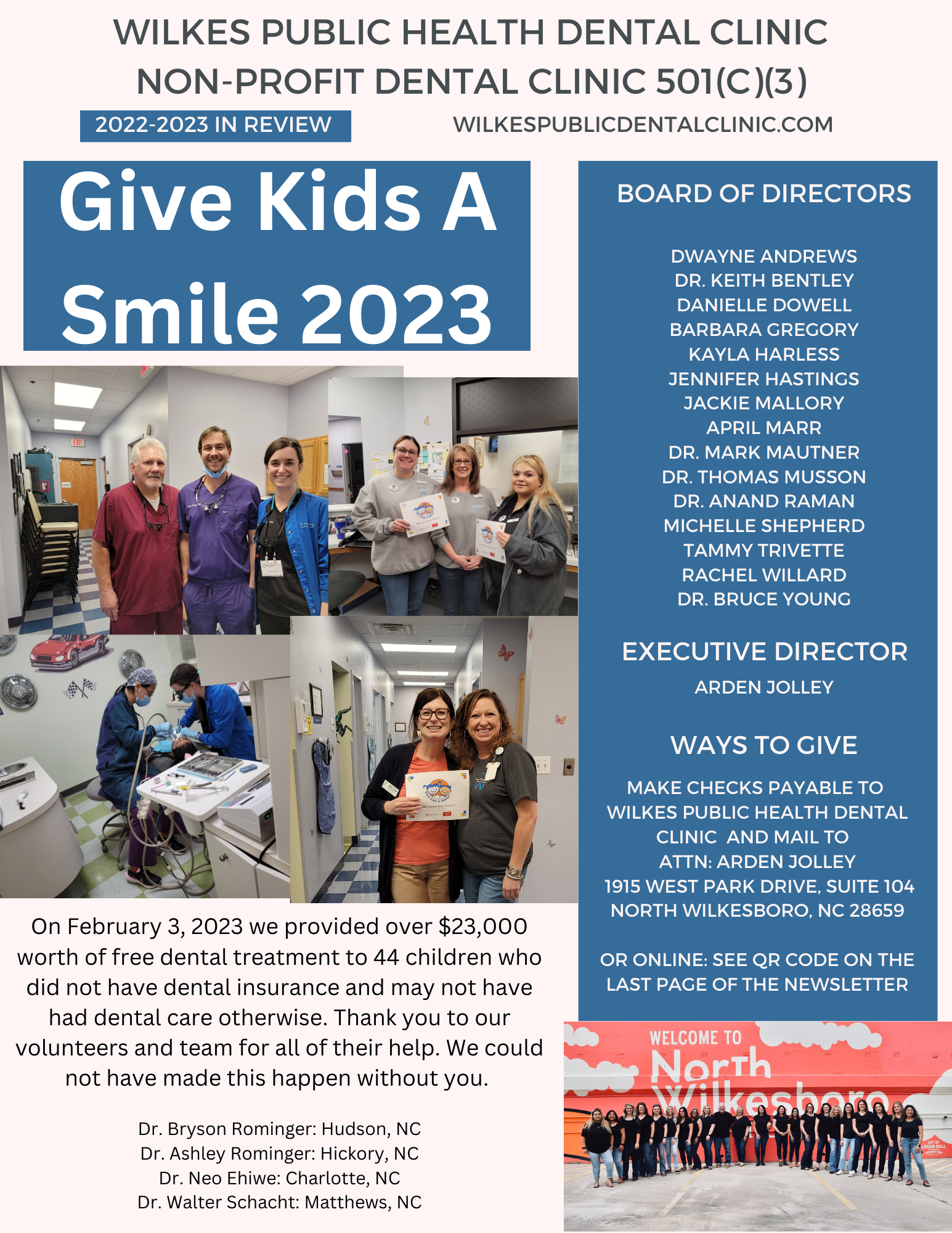 Arden has been in dentistry since 1993. She started her career in dentistry as a dental assistant and from there transitioned to treatment coordinator and then practice manager. She received her Bachelor of Science in Business Management with a concentration in Human Resources in 2021. Arden owns a dental consulting firm and is the president of Foothills Dental Office Administrator and Manager’s Association. She is a member of AADOM, NCPHA, NNOHA, and SHRM. Arden was appointed as the Executive Director of Wilkes Public Health Dental Clinic in July 2022. She enjoys time with her husband, son, and family.